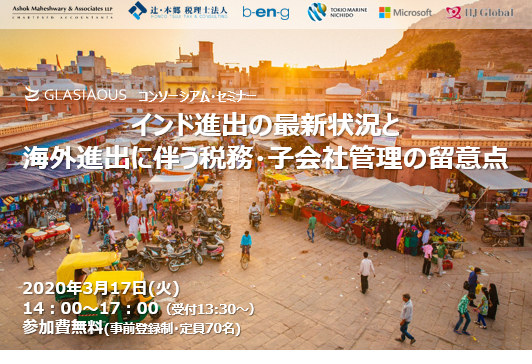 GLASIAOUSセミナー インド進出の最新状況と海外進出に伴う税務・子会社管理の留意点 |