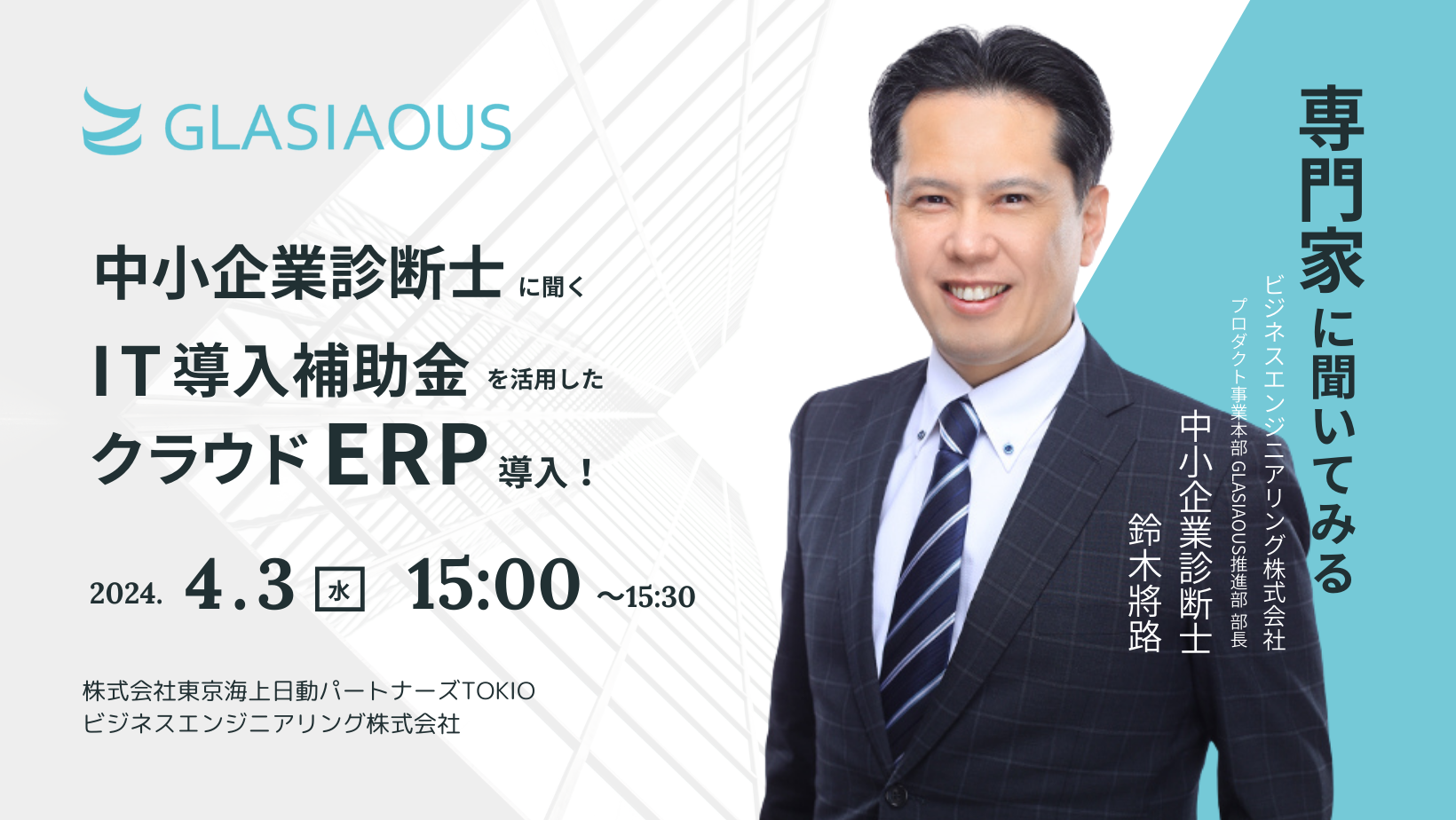 | テーマ | 2017年から始まったIT導入補助金ですが、「補助金」と聞くと、「申請が難しくハードルが高い」「時間も手間もかかる」「なかなか審査に通らない」というイメージをお持ちの方も多いのでしょうか。そこで本セミナーでは、中小企業診断士の資格をもち、IT導入補助金の申請サポートも行っている“経営×IT×補助金の専門家”から「IT導入補助金採択のコツ」や「おすすめの申請枠」「IT導入補助金を活用して業務効率化するシステム」について30分で解説いたします。是非ご参加ください! |