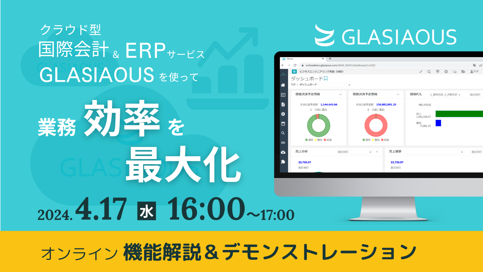 クラウド型国際会計&ERPサービスGLASIAOUS(グラシアス)の機能説明&質問会を開催いたします。