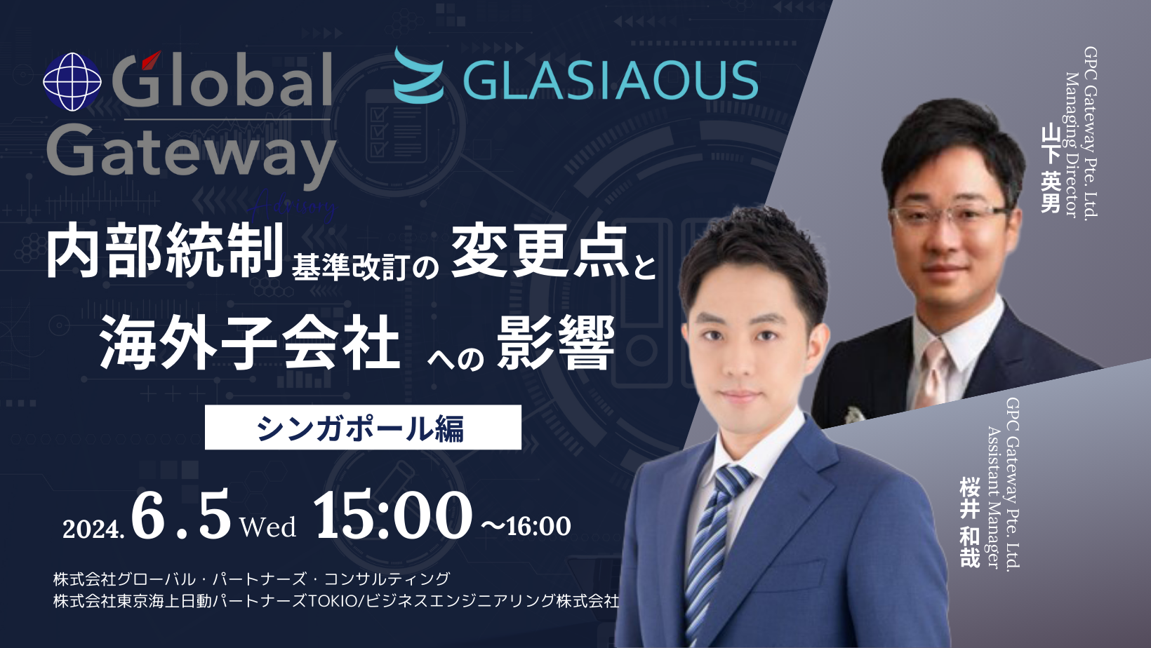 本セミナーはシンガポールに焦点を当て、「内部統制基準の改訂とその海外子会社管理への影響」というテーマで開催いたします。内部統制基準の変更点及びそれがシンガポール市場に与える影響について深く掘り下げます。また、シンガポールがアジアのビジネスハブとして担う役割を考慮し、改訂された基準が地域固有の法規制とビジネス環境にどのように影響を与えるかを分析します。 具体的な事例を用いて、シンガポールにおける効率的かつ効果的な内部統制体制の構築方法について解説しますので、シンガポール独特のビジネス文化、内部統制の強化、リスク管理、法令順守の適応策についての貴重な情報を発信します。 |