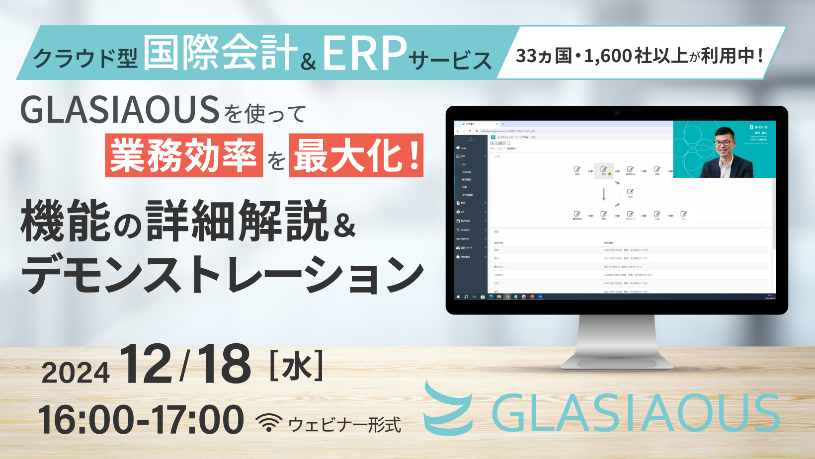 クラウド型国際会計&ERPサービスGLASIAOUS(グラシアス)の機能説明&質問会を開催いたします。