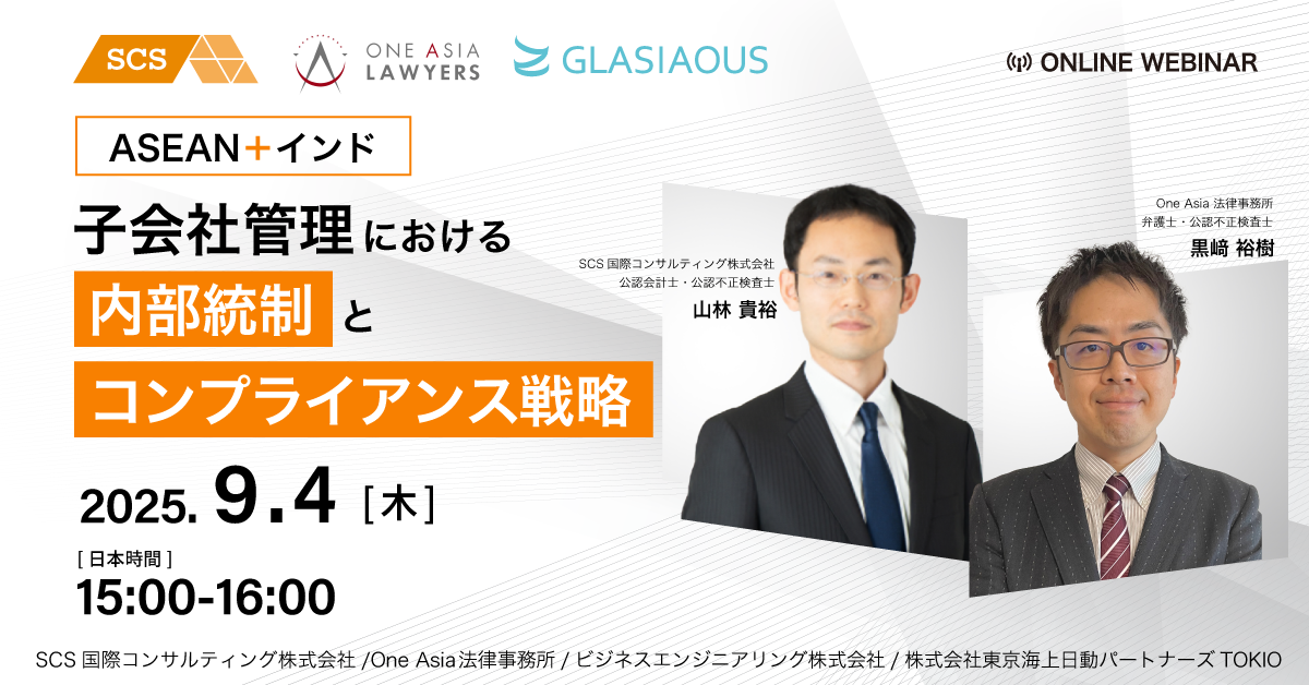 海外展開が加速する中、ASEAN・インド地域での子会社管理における内部統制の重要性がますます高まっています。 |