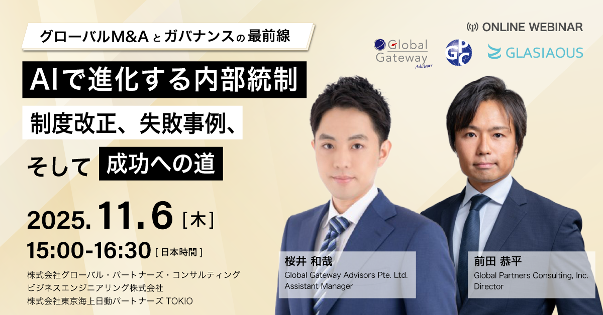 グローバルに進展するM&Aとガバナンスの強化において、内部統制の在り方は大きな転換期を迎えています。本セミナーでは、制度改正後の内部統制運用の実態や期待値との差異を整理しつつ、AIやITシステムを活用したガバナンス強化の最新動向を解説します。特に、AI導入による内部統制の高度化、失敗事例と成功事例を交え、今後の実務対応や戦略策定に直結する知見を提供します。 |